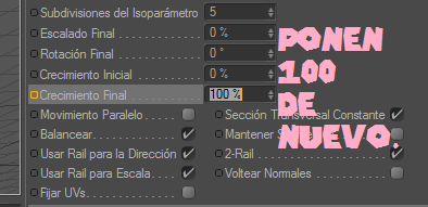 Ahora un poquito mas adelante de donde está el fotograma clave del crecimiento final, vamos a poner en crecimiento inicial 100 y le vamos a dar control+click en el puntito de al lado.